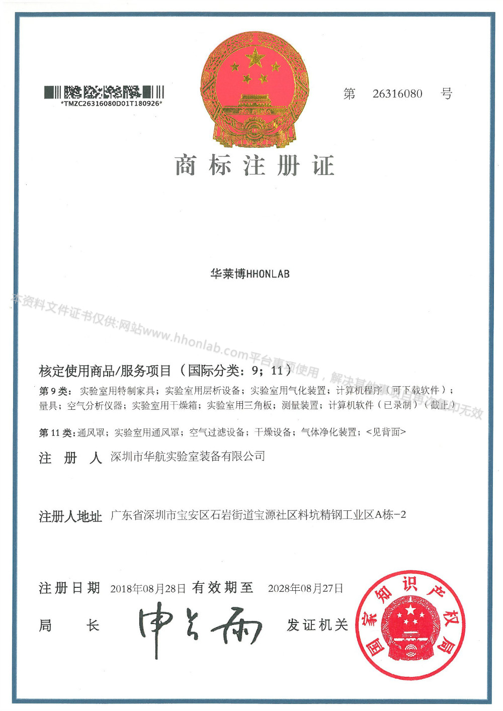 商标注册证书